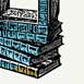 This logo of stacked books tells the story of the Igherm Project that renovated a 4 story stone granary into a library for women and children in Morocco.